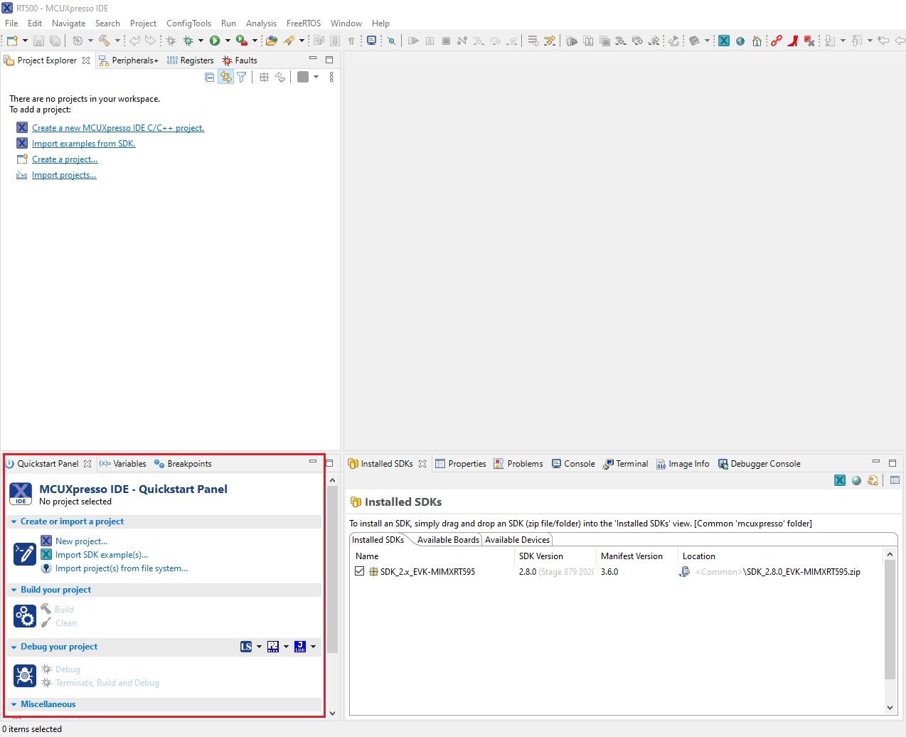 If one or more of the demo application or driver examples sounds interesting, you're probably wanting to know how you can build and debug yourself. The Getting Started with SDK guide provides easy, step-by-step instructions on how to configure, build, and debug demos for all toolchains supported by the SDK. Use the guide below to learn how to open, build and debug an example application in MCUXpresso IDE.