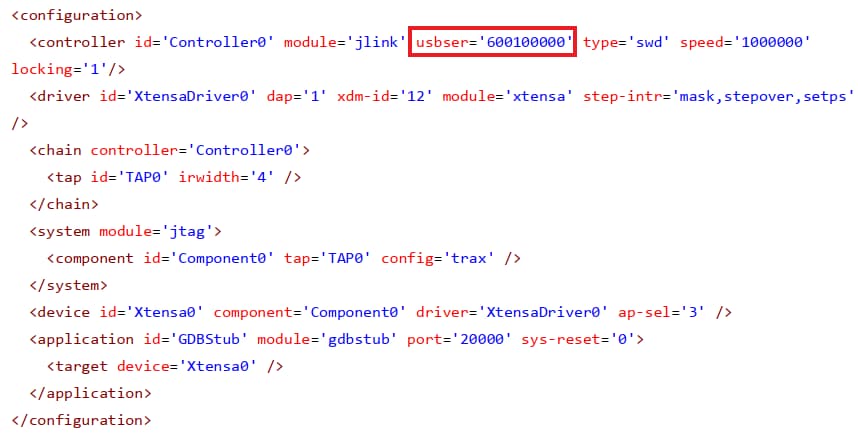 You will need to modify this file for your debugger hardware. Using J-link as example, please use this topology.xml file to replace the original file. Or copy one of the examples below