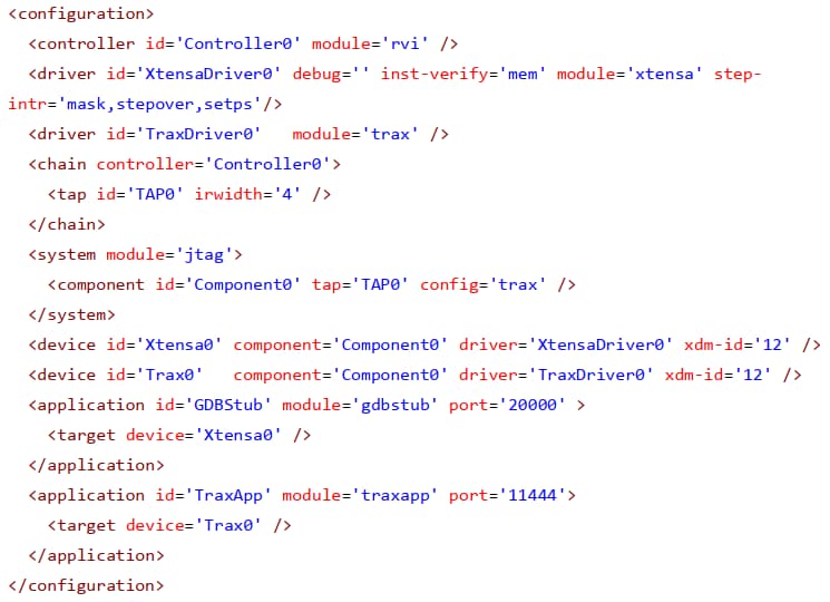 Edit topology file. xt-ocd is configured with an XML input file 'topology.xml'. The file is located in the Xtensa OCD installation directory at “C:\Program Files (x86)\Tensilica\Xtensa OCD Daemon 14.01”