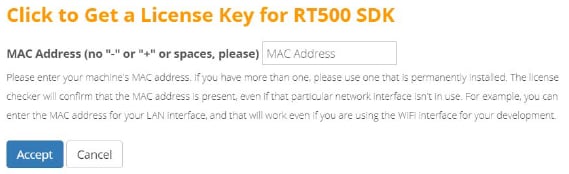 Reload and return to the Tensilica URL: Fusion f1 DSP SDK For RT500 and click on “Get a License Key for RT500 SDK”.