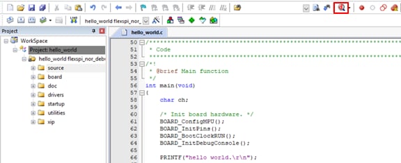 For this example, select the “hello_world – flexspi_nor_debug” target.