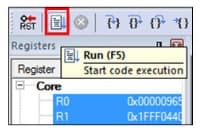 The application is then downloaded to the target and automatically runs to the main() function.