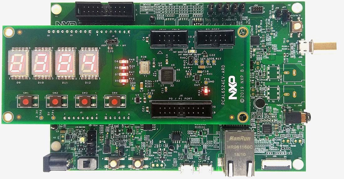 PCAL6524EV-ARD evaluation board is designed and built as a daughter board able to work in conjunction with a mother board equipped with an Arduino port. The board was built to be fully compatible with the following NXP Evaluation (EVK) boards: