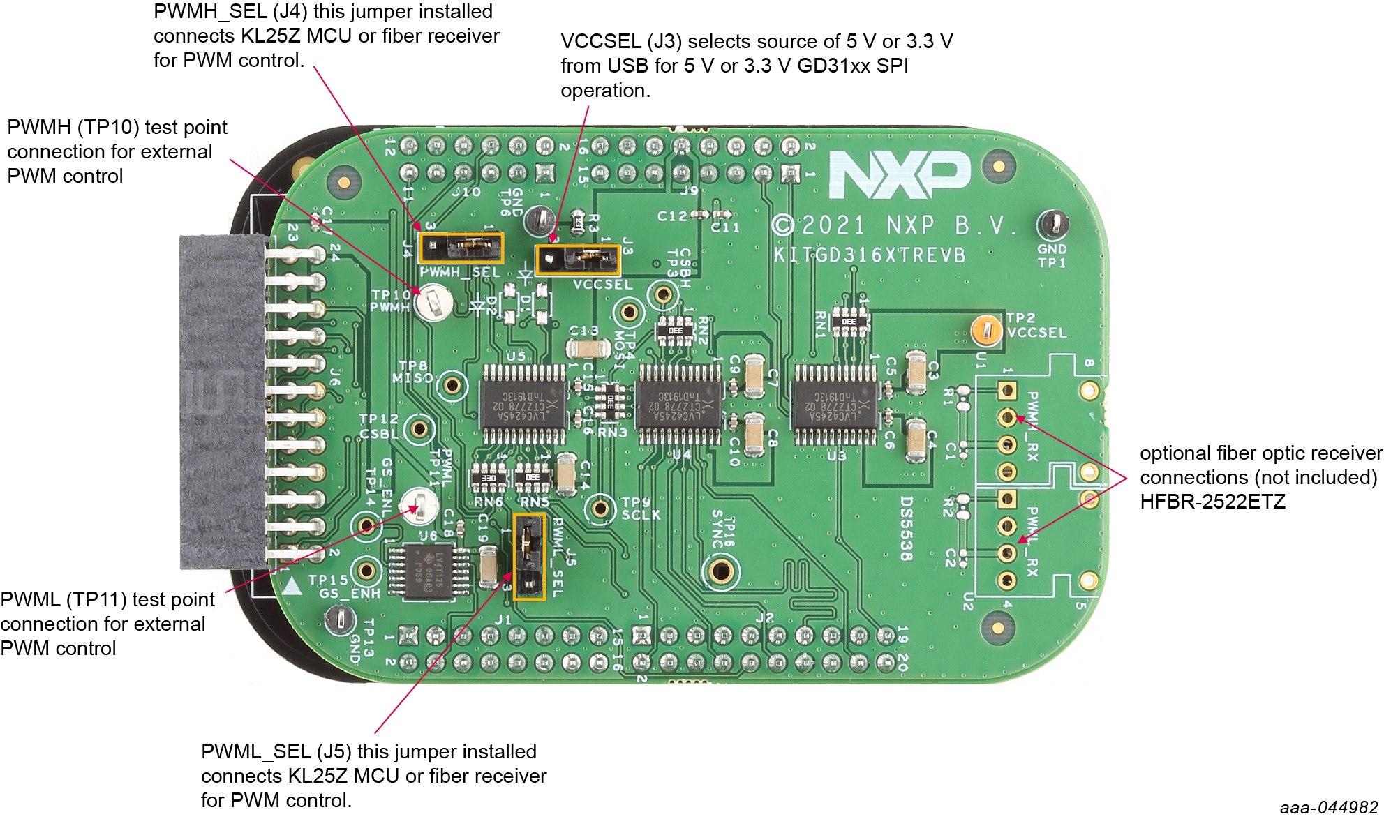 KITGD316XTREVB translator enables level shifting of signals from MCU 3.3 V to 5.0 V SPI communication.