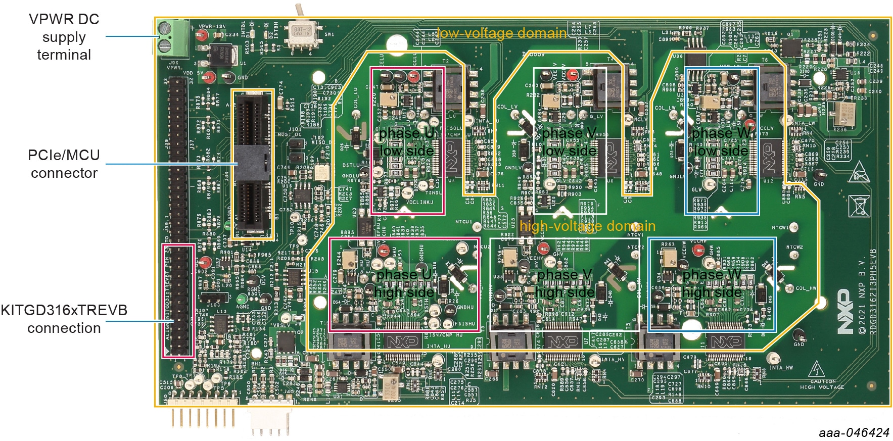 The RDGD3162I3PH5EVB is a fully functional three-phase inverter evaluation board populated with six GD3162 gate drivers with fault management and supporting circuitry. This board supports serial peripheral interface (SPI) daisy chain communication for programming and communication with three high-side gate drivers and three low-side gate drivers independently, or all six gate drivers at the same time.