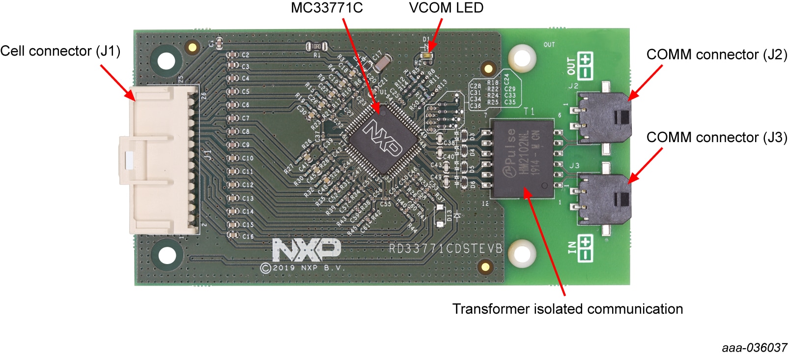 The RDI7014DT1 serves as a hardware evaluation tool in support of NXP's MC33771C device. The RDI7014DT1 is an ideal platform for rapid prototyping of MC33771C-based applications that involve current, voltage and temperature sensing.