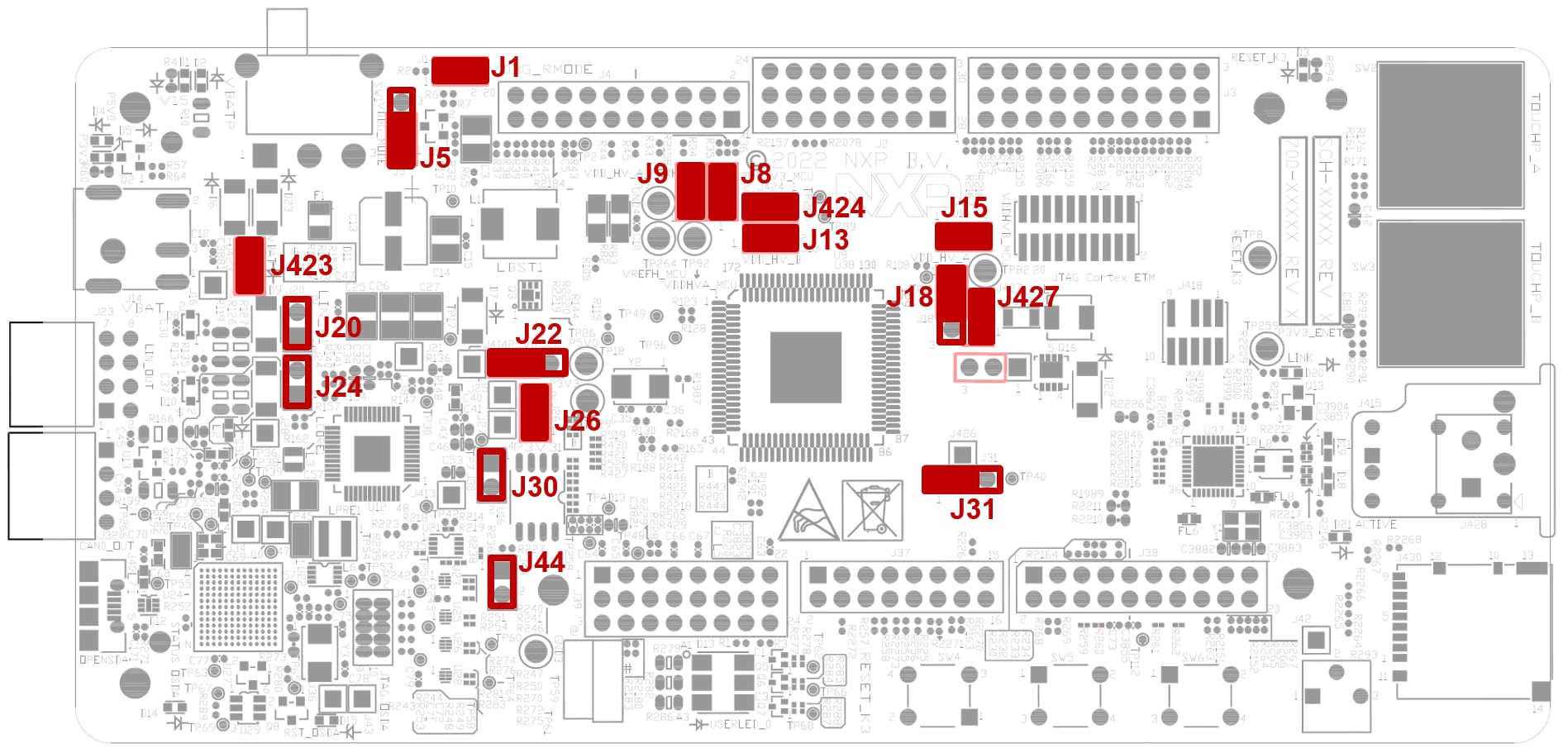 Or use one of the available JTAG connectors to debug via the external S32K3 debugger.