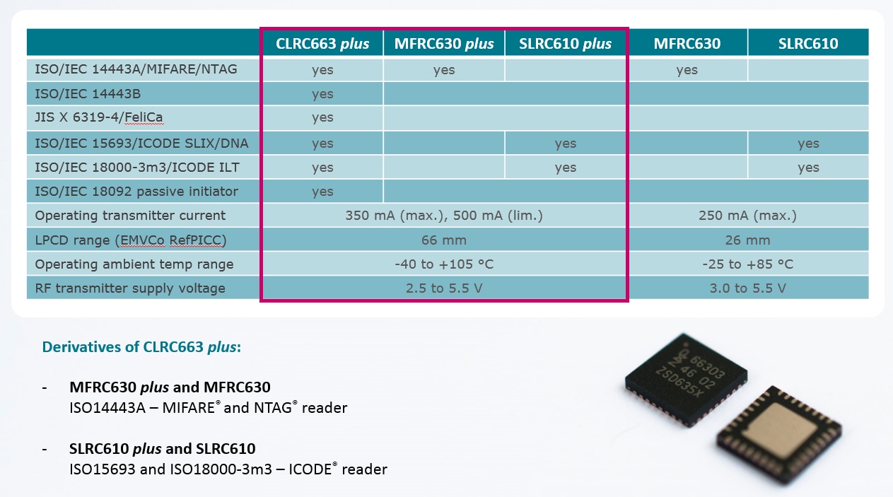 The CLRC663 plus (CLRC66303HN) is the perfect choice for NFC applications with high performance requirements: access control, payment, gaming and industrial.