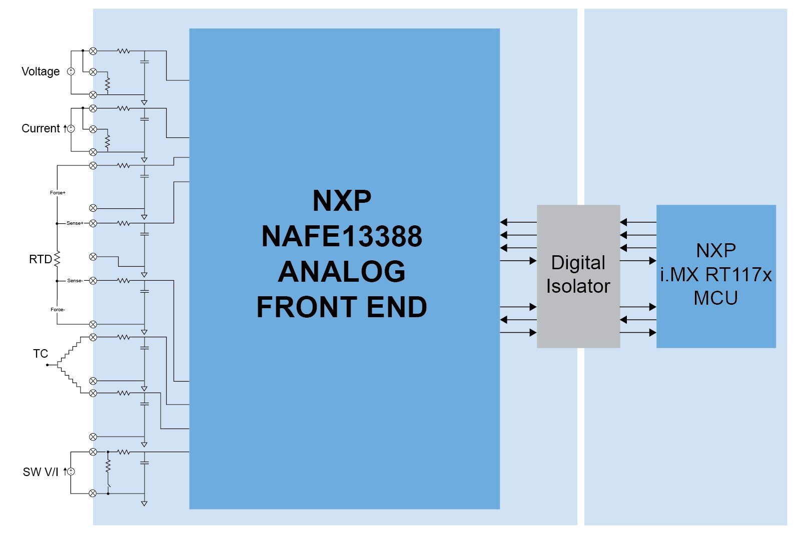 The device integrates low-leakage, high-voltage (HV) fast multiplexers, low-offset and low drift programmable gain amplifier (PGA) and buffers, high data rate 24/16-bit delta-sigma analog-to-digital converter (ADC), precise voltage and current excitation source, and low-drift voltage reference. All of the HV analog pins are diode-protected internally for electromagnetic compatibility (EMC) and miswiring scenarios. The NAFEx3388 are equipped with various diagnostic and supplies supervisory circuitry for condition monitoring and anomaly detection. Two precise calibration voltage sources are made available for ease of end-to-end system self-calibration and predictive maintenance.