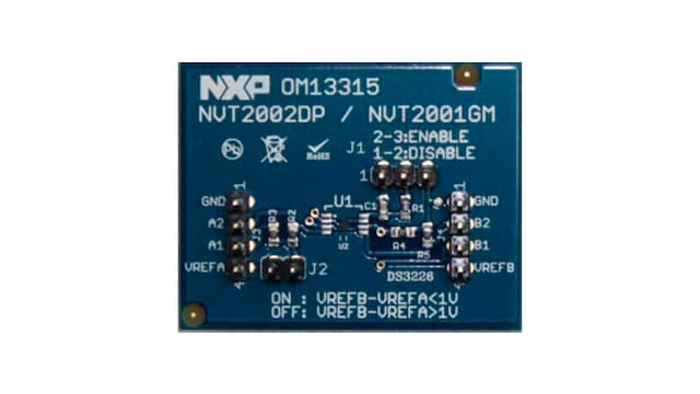 The NVT2001GM (OM13315) and NVT2002DP (OM13318) demo boards are designed to evaluate the NXP 1-channel or 2-channel bi-directional voltage level translators. The demo boards interface between device I/Os operating at different voltage levels. Since the NVT2001GM and NVT2002DP devices are passive devices, pull-up resistors may be needed depending on the I/O interface type (totem pole or open-drain), a difference in translation voltage, and the translation direction (high to low voltage, low to high voltage, or bidirectional). The NVT2001GM and NVT2002DP devices allow translations between any voltages from 1.0 V to 5.5 V.