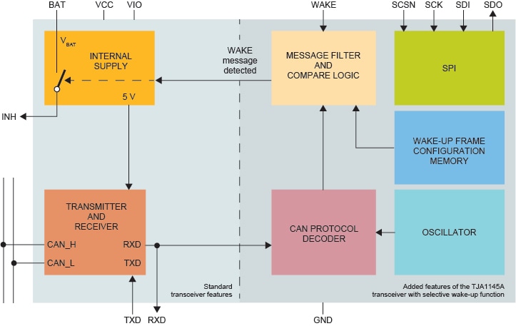 The TJA1145A features very low power consumption in standby and sleep modes and supports ISO 11898-2:2016 compliant CAN Partial Networking by means of a selective wake-up function.