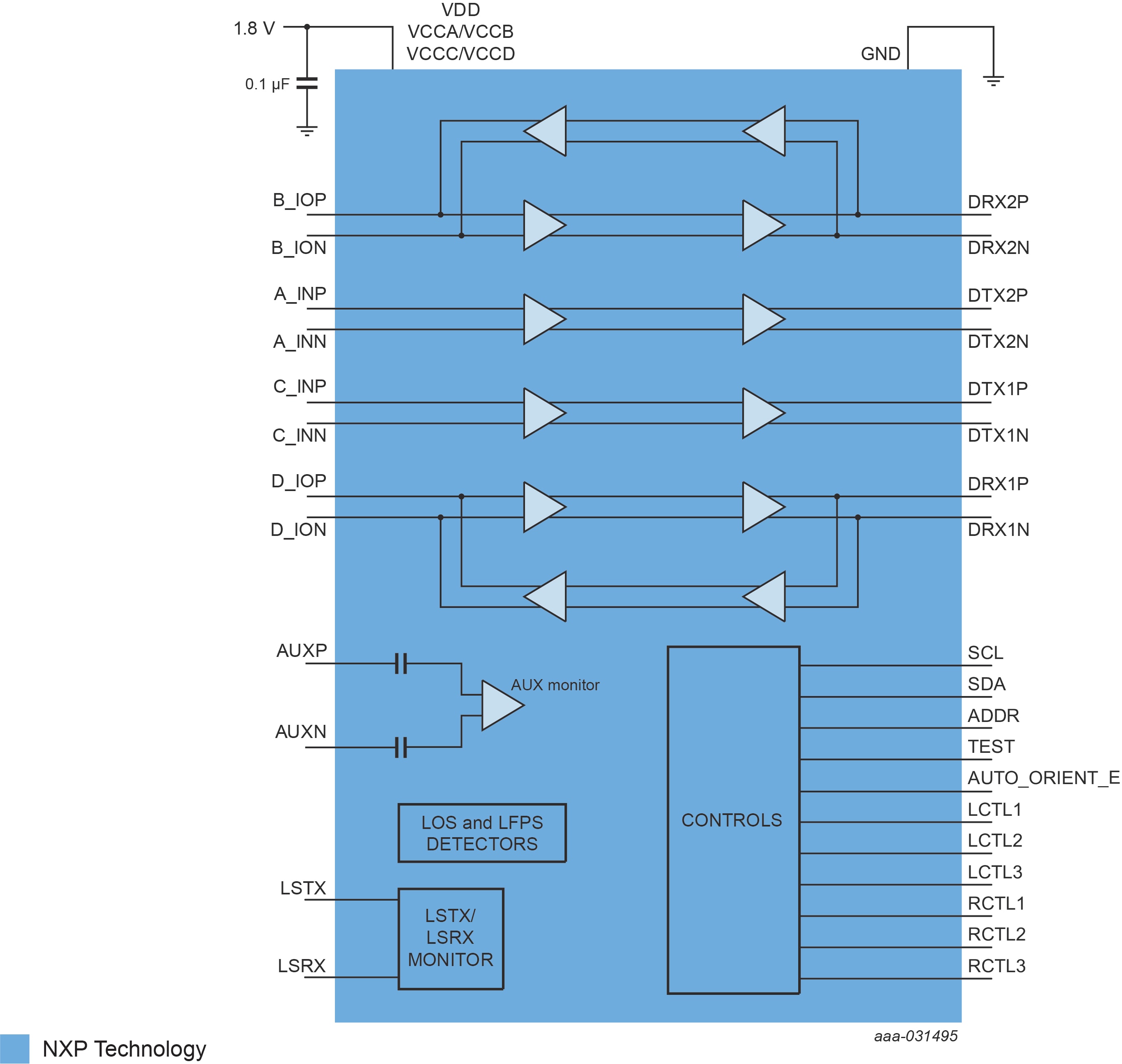 PTN38007 is powered from a 1.8 V supply. It is available in a small high performance HWFLGA36 package.