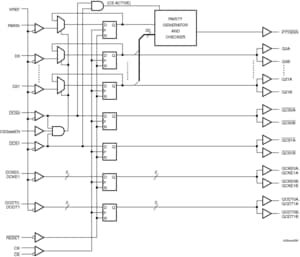 The SSTU32865 also integrates a parity function, which accepts a parity bit from the memory controller, compares it with the data received on the D-inputs and indicates whether a parity error has occurred on its open-drain PTYERR pin (active-LOW).