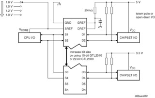 The Gunning Transceiver Logic - Transceiver Voltage Clamps (GTL-TVC) provide high-speed voltage translation with low ON-state resistance and minimal propagation delay. The GTL2002 provides 2 NMOS pass transistors (Sn and Dn) with a common gate (GREF) and a reference transistor (SREF and DREF). The device allows bidirectional voltage translations between 1.0 V and 5.0 V without use of a direction pin.