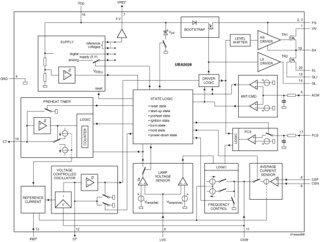 The UBA2028 is a high voltage power IC that drives and controls electronically ballasted Compact Fluorescent Lamps (CFLs). The IC includes a Metal-Oxide-Semiconductor Transistor (MOST) half-bridge power circuit, a dimming function, a high voltage level shift circuit, an oscillator function, a lamp voltage monitor, a current control function, a timer function and various protections.