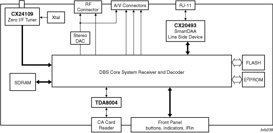 The CX24109 is a highly integrated, direct down-conversion satellite tuner intended for high-volume digital video, audio, and data receivers. When combined with the CX24121 QPSK demodulator/FEC decoder, the chip set provides a complete broadband satellite front-end solution capable of operating from 1-45 MSps in the most demanding satellite environments. It is compatible with international standards such as DVB and DSS. The highly integrated CX24109 reduces the tuner BOM cost and simplifies the RF layout.