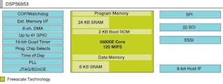 The DSP56853 is a member of the DSP56800E core-based family of digital signal controllers. This device combines the processing power of a DSP and the functionality of a microcontroller with a flexible set of peripherals on a single chip to create an extremely cost-effective solution. The DSP56853 includes peripherals that are especially useful for teledatacom devices, Internet appliances, portable devices, TAD, voice recognition, hands-free devices and general purpose applications.