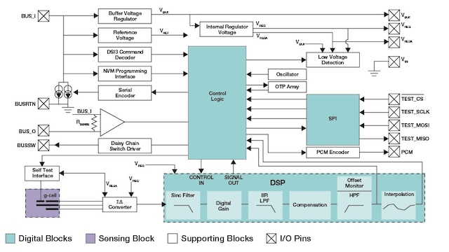 The MMA27xxKW inertial satellite sensor supports the DSI3 communication protocol for automotive airbag front and side crash detection.