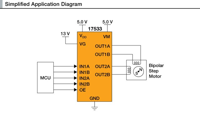The NXP® MPC17533 is a monolithic dual H-Bridge IC that is ideal in portable electronic applications for controlling stepper or Brush DC-motors, such as camera lens shutters and optical disk drives.