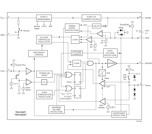The GreenChip II is the second generation of green Switched Mode Power Supply (SMPS) control ICs operating directly from the rectified universal mains. A high level of integration leads to a cost effective power supply with a very low number of external components. The special built-in green functions allow the efficiency to be optimum at all power levels. This holds for quasi-resonant operation at high power levels, as well as fixed frequency operation with valley switching at medium power levels. At low power (standby) levels, the system operates at a reduced frequency and with valley detection.