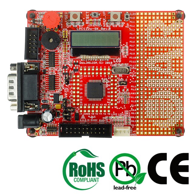 The IAR LPC1227 Evaluation Board allows you to quickly and easily evaluate the LPC122x family of microcontrollers. The microcontroller, board, and accompanying features make it a great starting point for your next Cortex-M0 project.