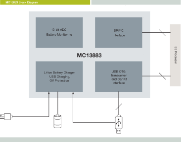 This product information is classified as ARCHIVED due to product being in its End of Life (EOL) cycle. The MC13883 is a monolithic integration of a Lithium Ion battery charger with CEA-936 carkit interfacing support and a USB On-the-Go (OTG) transceiver.