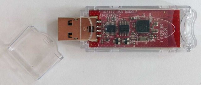 The OM15021 pack contains a JN5179 USB Dongle, which can be used as a node in a ZigBee wireless network, typically as a ZigBee Control Bridge, ZigBee Co-ordinator or packet sniffer. The dongle is based on the NXP JN5179 wireless microcontroller. It can be used stand-alone or with the components of the JN517x-DK005 or JN516x-EK004 kit.