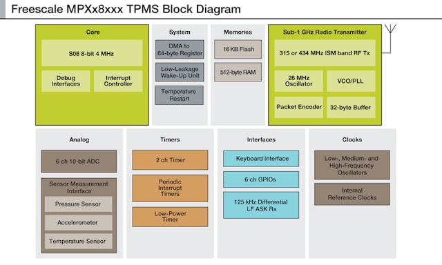 The MPXx85/86xxD is a sensor for use in applications that monitor tire pressure and temperature. It contains the pressure and temperature sensors, a Z-axis or an XZ-axis accelerometer, a MCU, an LF receiver and an RF transmitter all within a single package.