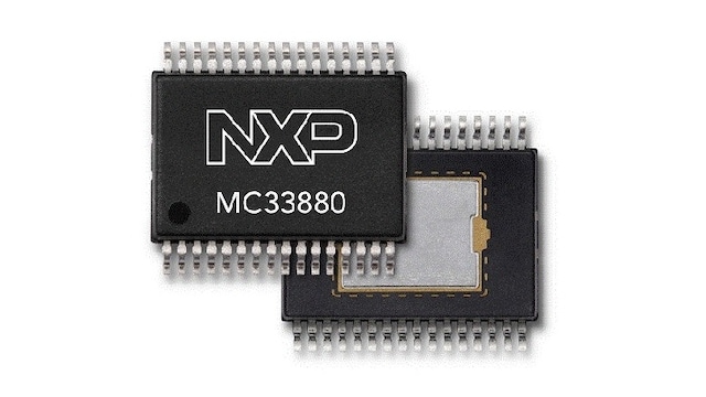 The NXP® MC33880 is an 8-output hardware configurable high side/low side switch with 8-bit serial input control using the serial peripheral interface (SPI).