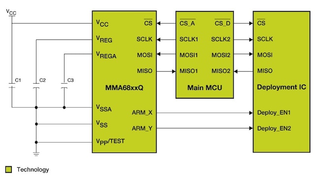 The MMA68xx sensor offers a two-axis, medium-g, over-damped lateral accelerometer designed for use in automotive airbag systems.