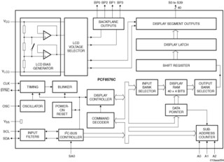 The PCF8576C is a peripheral device which interfaces to almost any Liquid Crystal Display (LCD) with low multiplex rates. It generates the drive signals for any static or multiplexed LCD containing up to four backplanes and up to 40 segments and can easily be cascaded for larger LCD applications. The PCF8576C is compatible with most microprocessors or microcontrollers and communicates via a two-line bidirectional I²C-bus. Communication overheads are minimized by a display RAM with auto-incremented addressing and by hardware subaddressing.