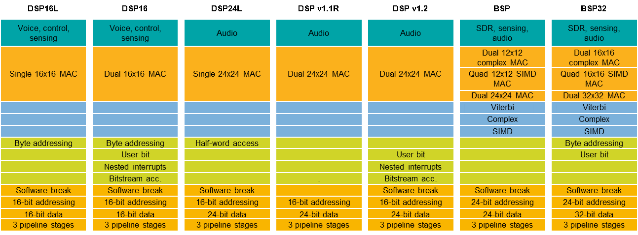 CoolFlux DSP is a 24-bit audio DSP core developed with years of experience in Ultra Low Power Design at NXP's ultra low power design group in Leuven. Later on NXP completed new cores in the CoolFlux DSP family optimized for Baseband Signal Processing such as for Software Defined Radio: the CoolFlux BSP and the 32-bit CoolFlux BSP32. Also smaller 16-bit cores have been added: CoolFlux DSP16L and CoolFlux DSP16 for speech and intelligent sensor signal processing.