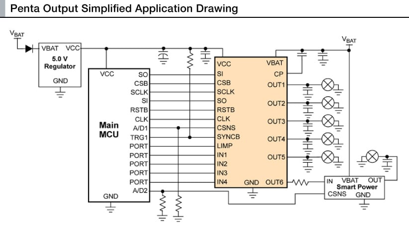 - Combines flexibility through daisy chainable SPI at 5.0 MHz, extended digital and analog feedbacks, safety and robustness