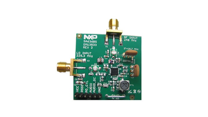 SA636BS evaluation demo board is used for RF bench evaluation at 240.05 MHz RF; 10.7 MHz IF