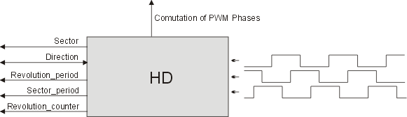 The HD eTPU function is intended to process signals generated by Hall sensors in motion control systems. It uses one, two, three, or four channels to decode Hall sensor signals, and to produce position and direction information. HD also provides a capability to commutate motor phases driven by the PWMC function.
